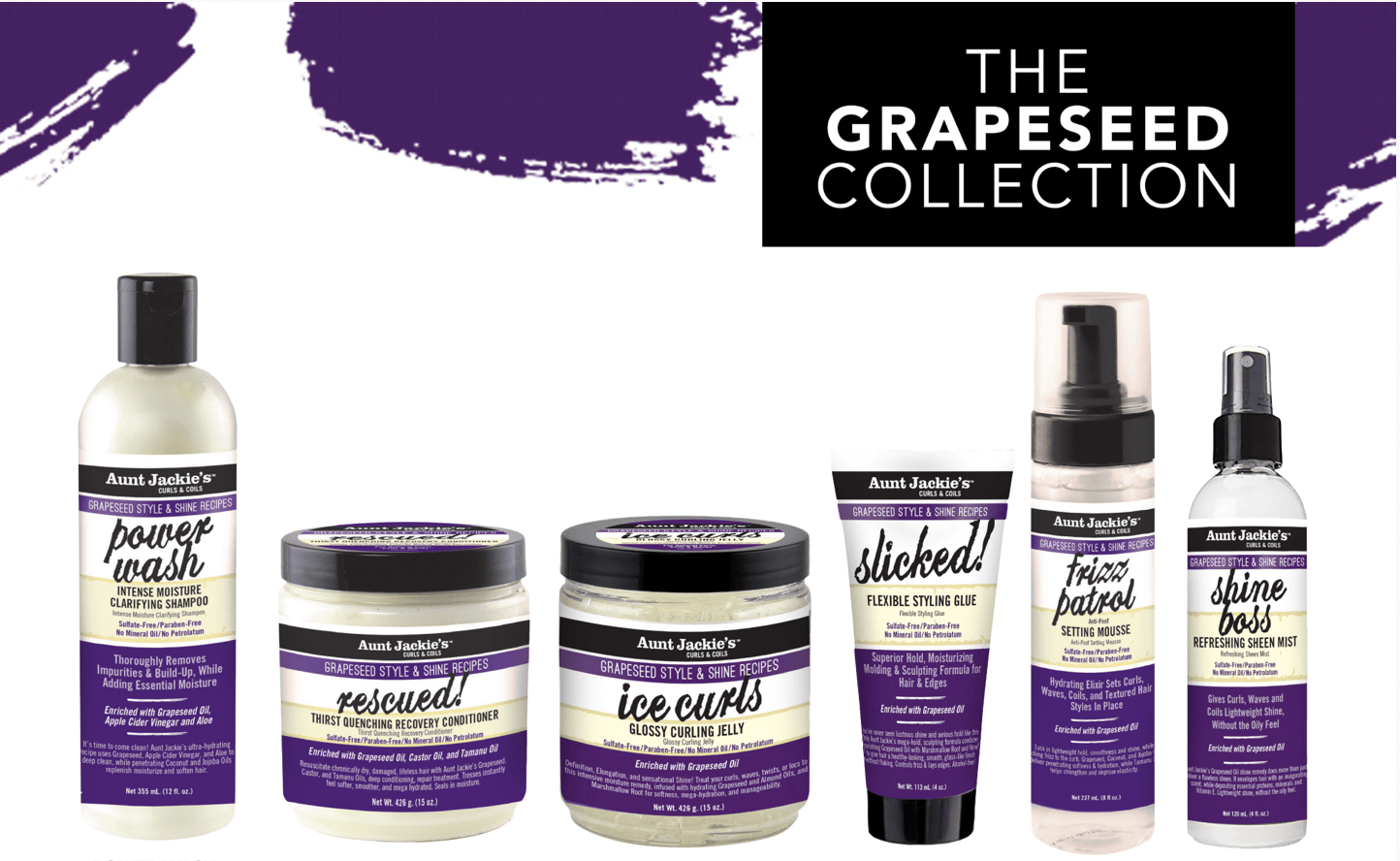Aunt Jackie’s is known for their tried and true hair products for curly girls. The brand isn’t like others in the natural haircare community, which seems to come out with new products every season. It’s been awhile, but a few months ago, Aunt Jackie’s launched a new product line containing grapeseed extract and you’re going to want to get into this.